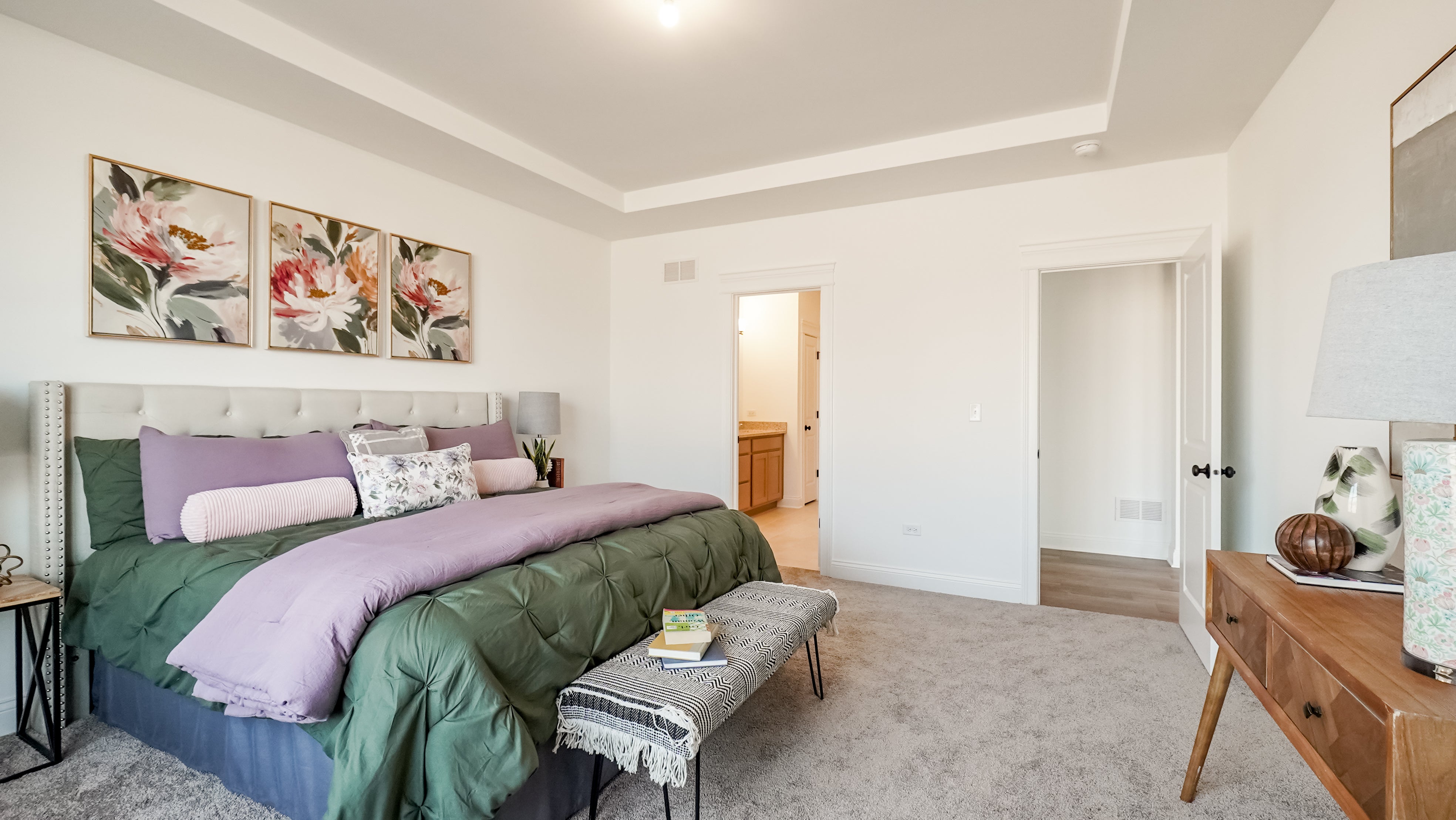 Across the home on the opposing side, you’ll find two bedrooms of equal size (no more fighting over who gets the bigger bedroom) sharing a hall bath, adding additional privacy for the heads of the household. With first-floor laundry tucked away near the mudroom, chores and clean-up have never been easier.