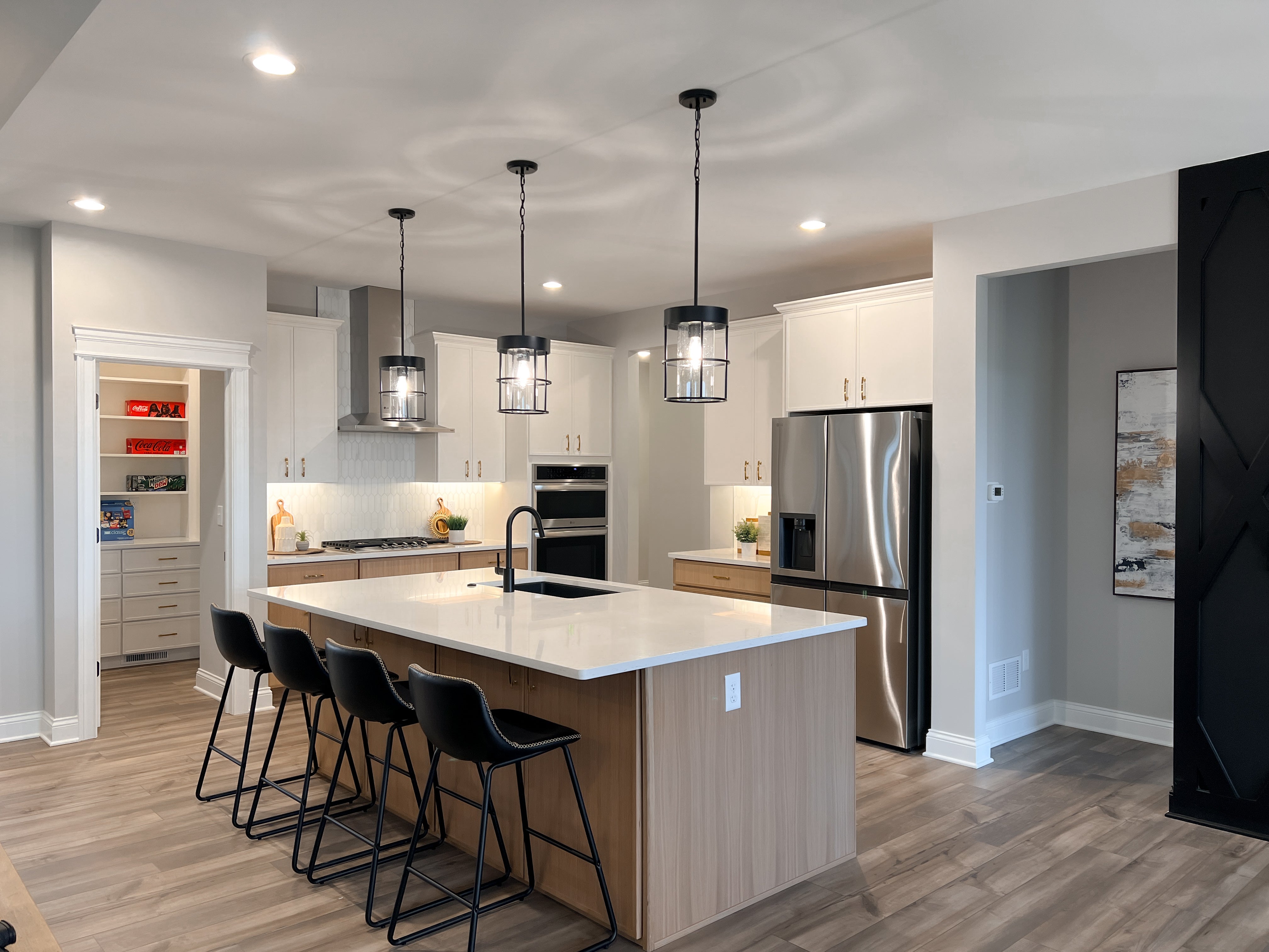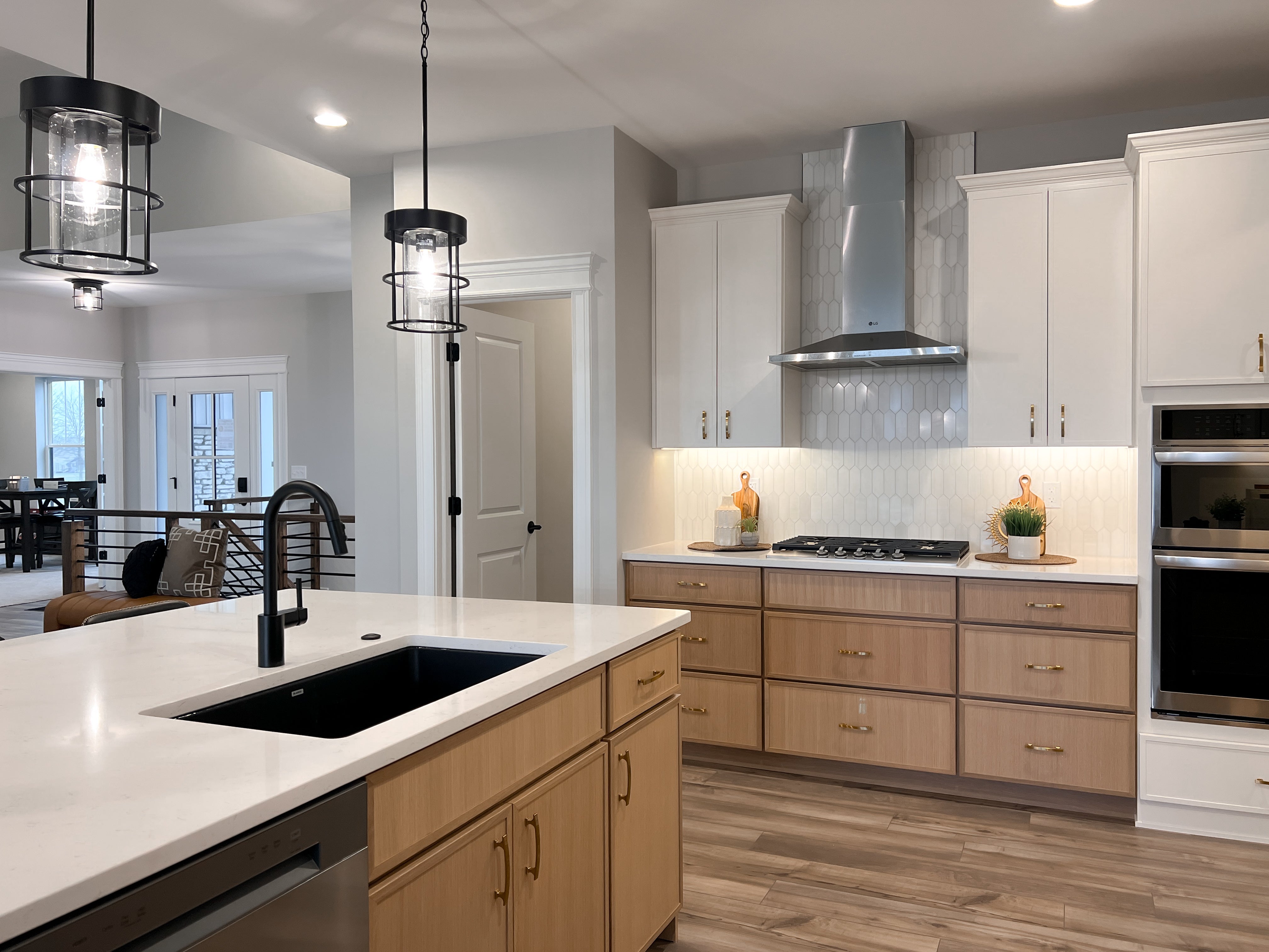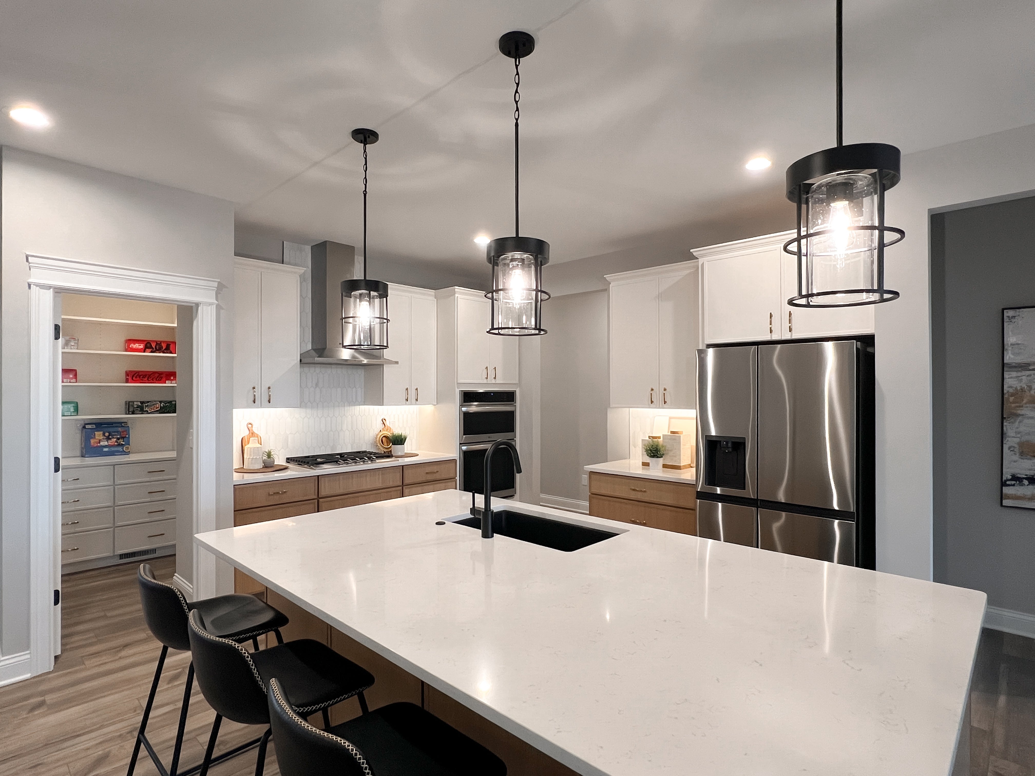 the great room. With a surplus of cabinets and stunning countertops, there is