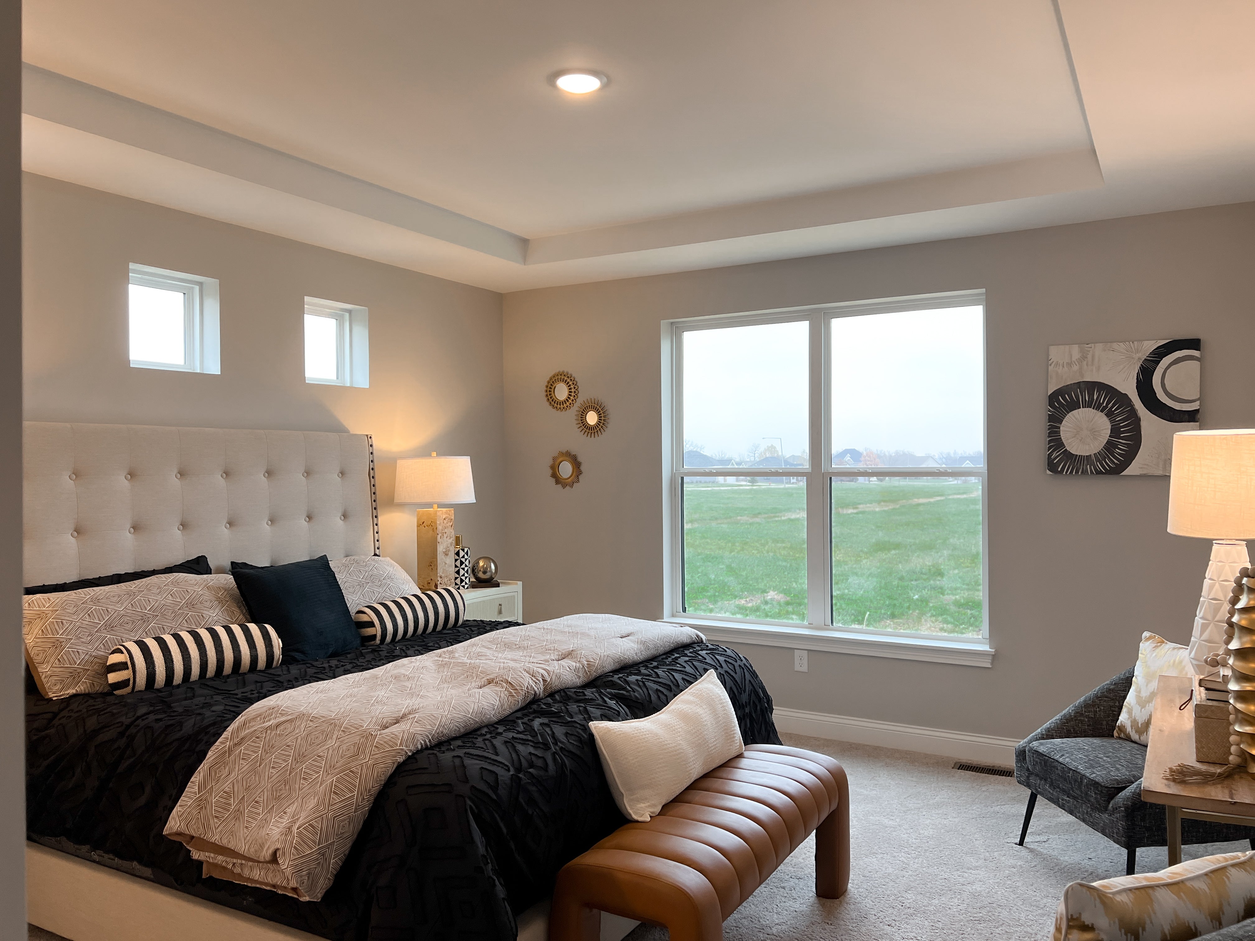 suite dawns a captivating tray ceiling and is privately tucked away on its own