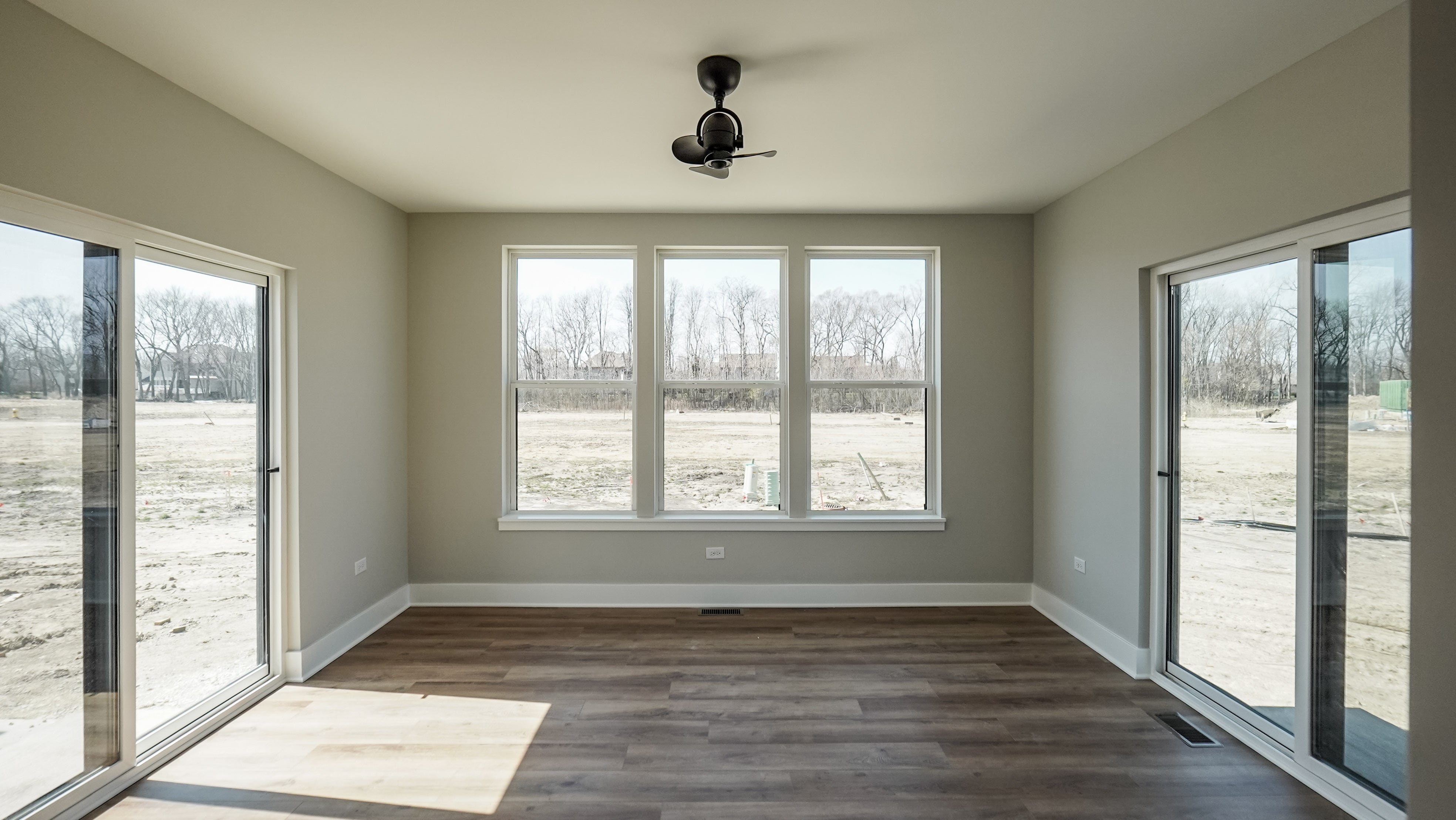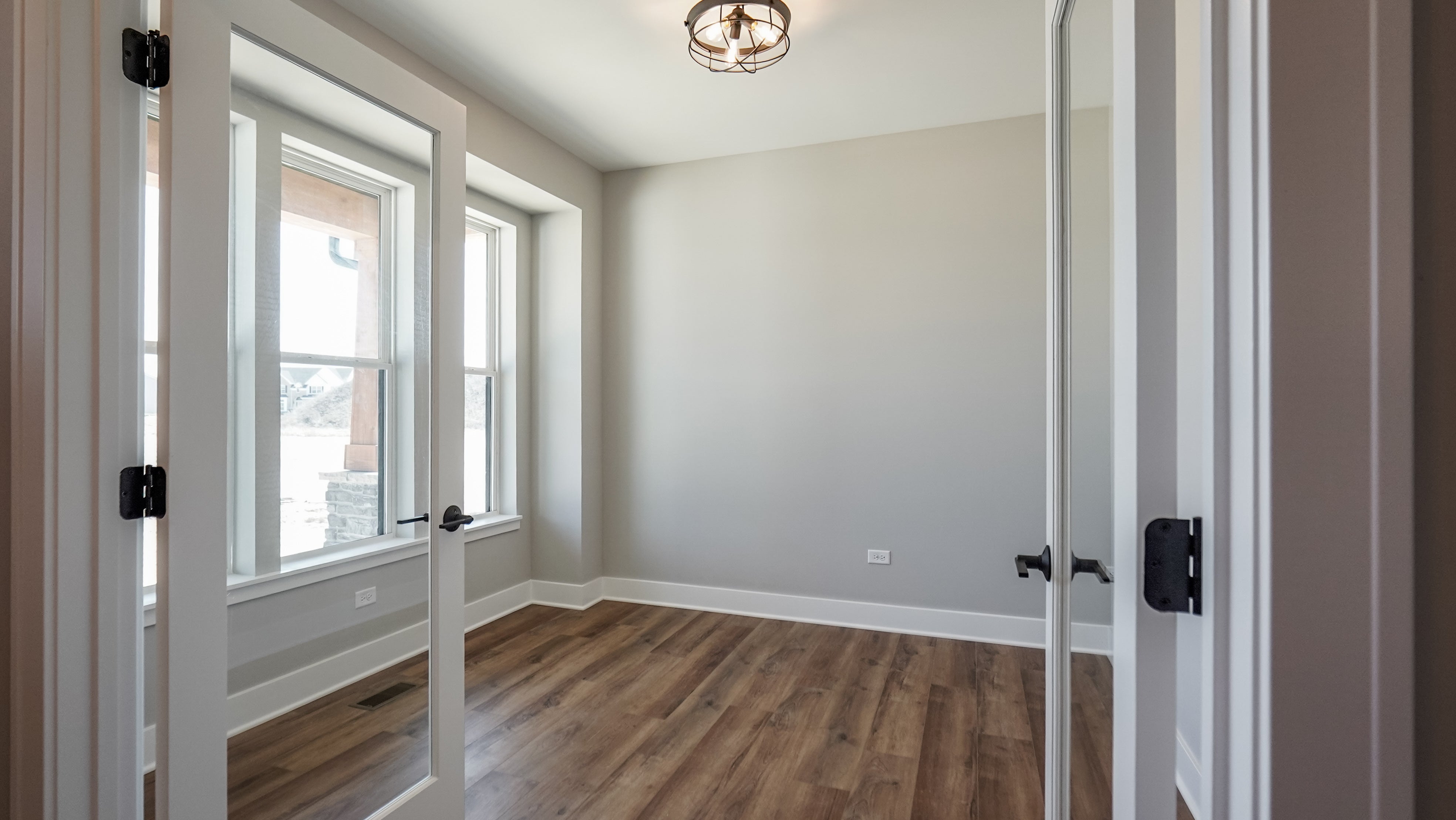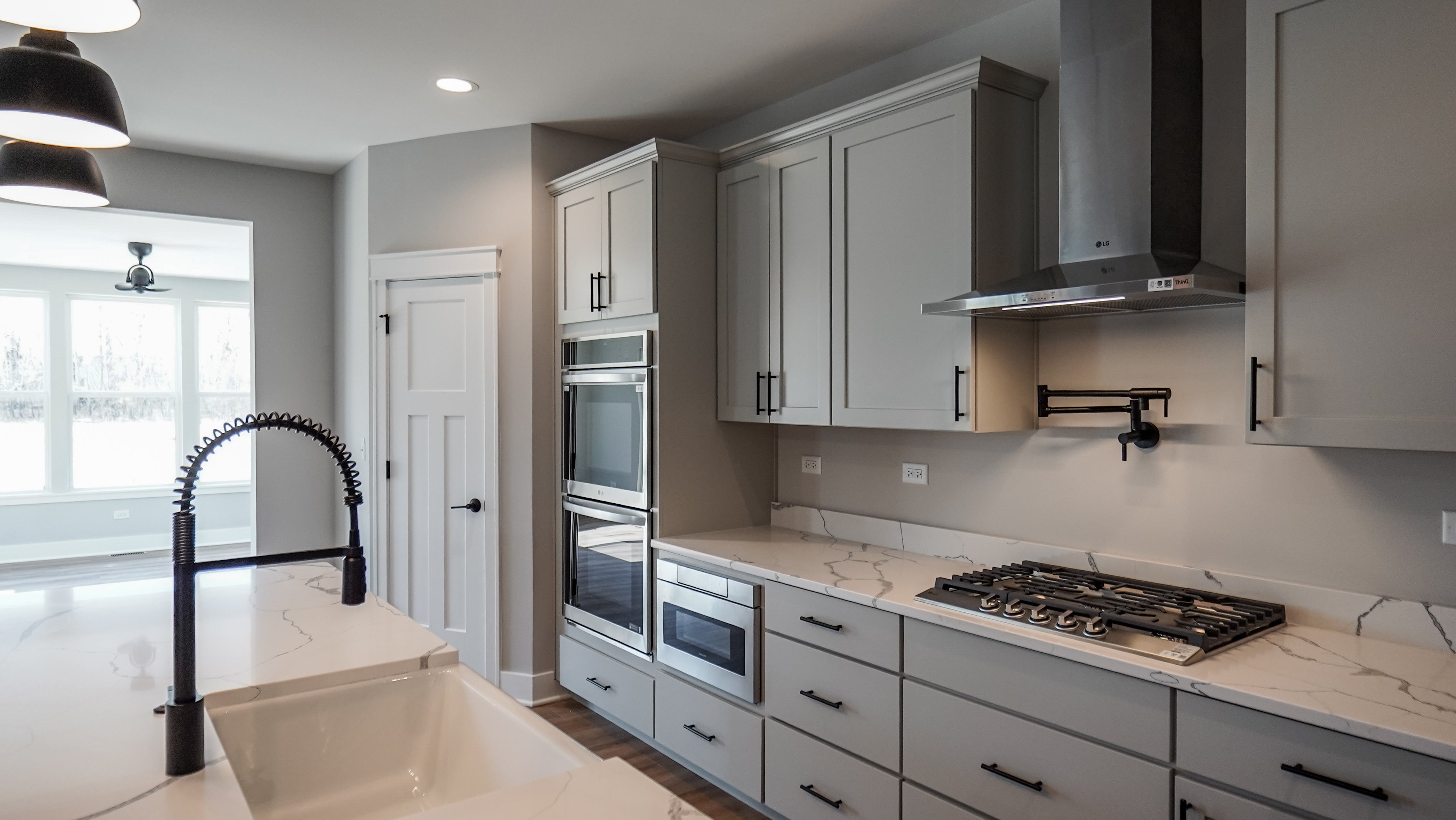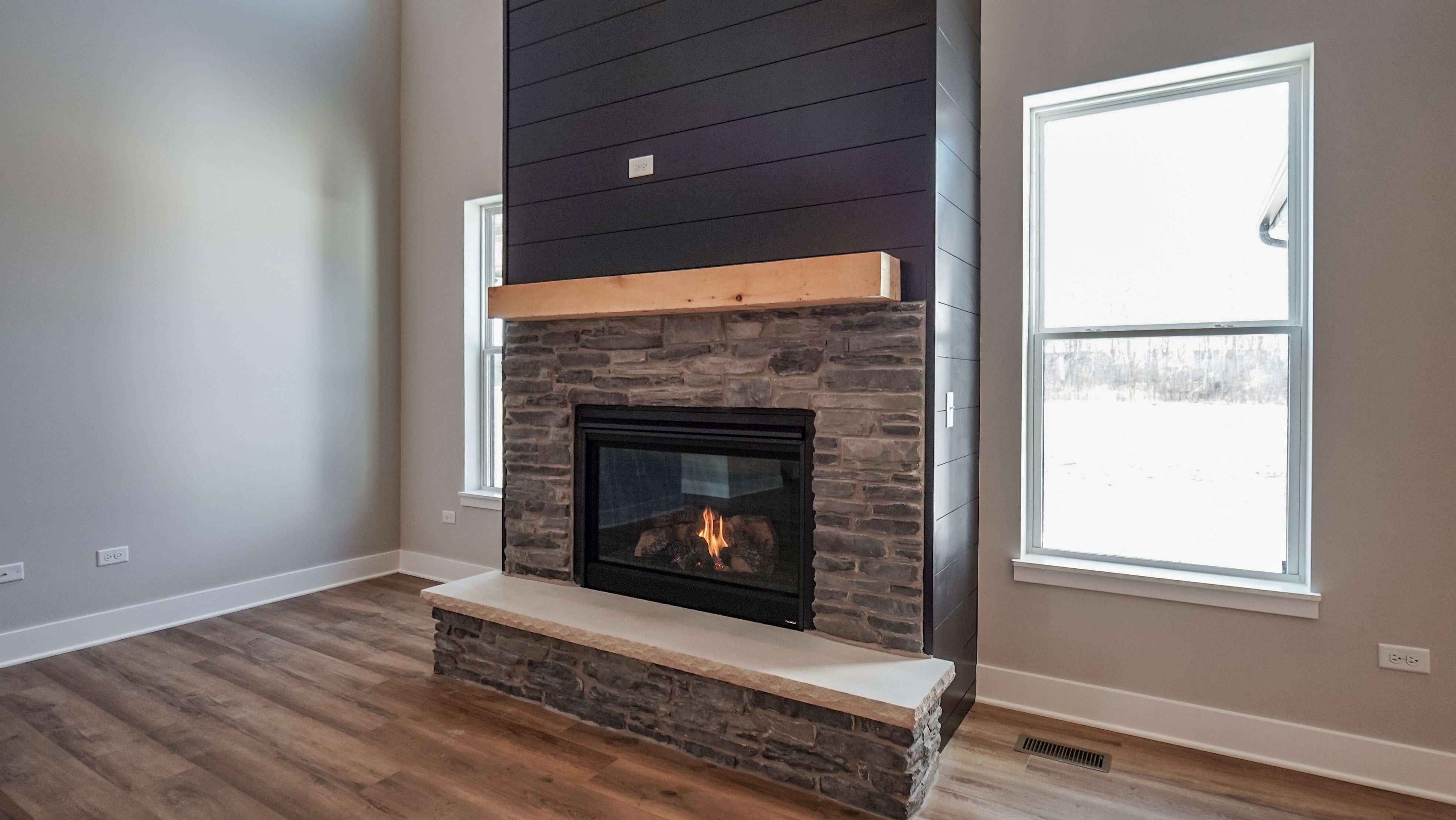As you step through the front door, an elegant foyer welcomes you, flanked by a formal flex room on one side and a convenient powder room on the other. Continuing through the foyer, you’ll discover the heart of the home—a breathtaking two-story great room that opens to the second floor. Adjacent to the great room is a formal dining room, an ideal space for hosting intimate dinners without distraction. Afterward, unwind in the great room by the optional fireplace, which serves as a beautiful centerpiece.